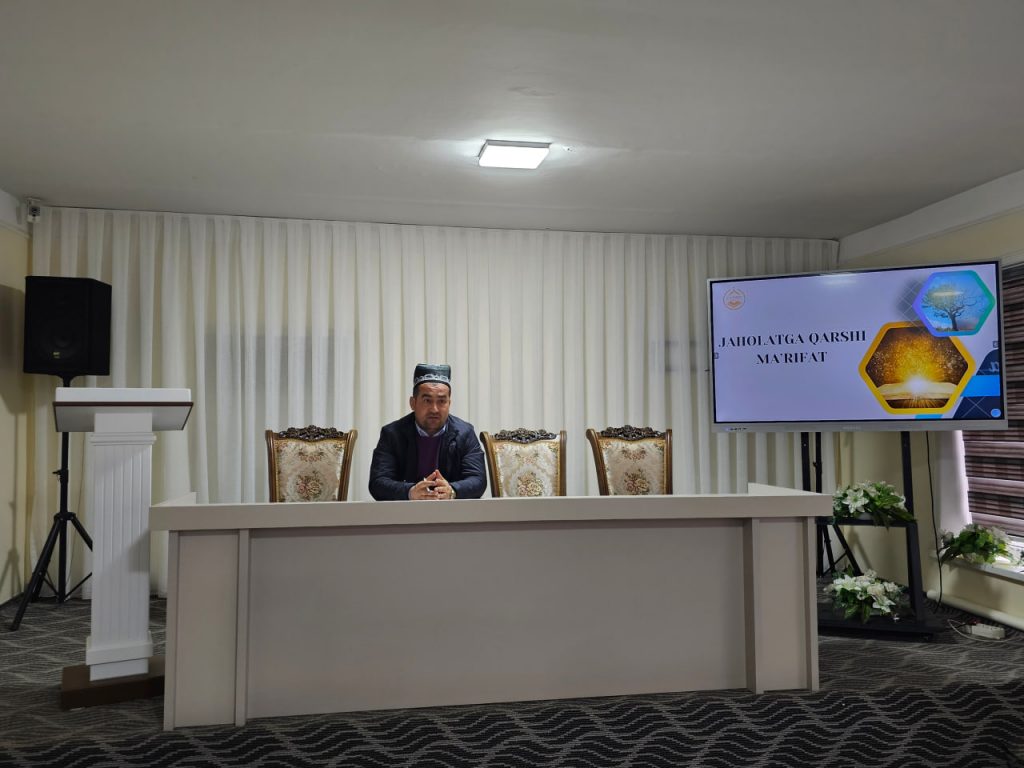 Tadbir davomida ta’lim muassasasining ma’naviy-ma’rifiy ishlar bo‘yicha direktor o‘rinbosari M. Qosimov so‘zga chiqib, ma’rifatning inson tafakkurini boyitish, to‘g‘ri qaror qabul qilish va sog‘lom dunyoqarashni shakllantirishdagi o‘rni yuzasidan fikr bildirdi.
